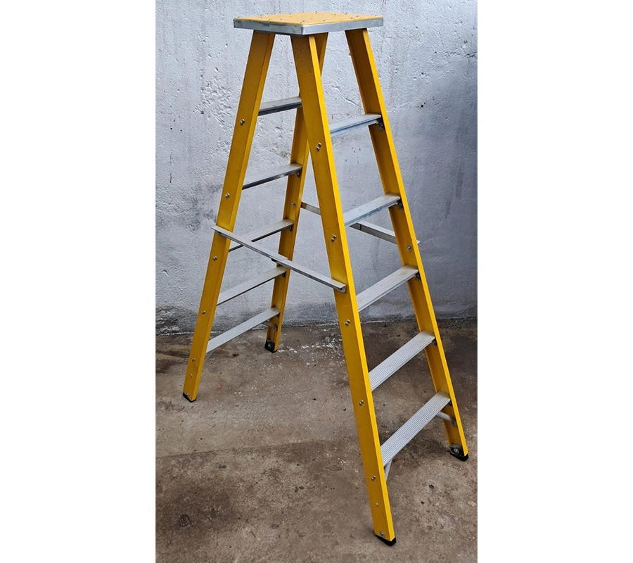The FRP A-type ladder or self-supporting FRP ladder stands firmly without wall assistance, making it a reliable industrial FRP ladder for indoor electrical maintenance and inspections factories and substations. Built as a non-conductive ladder, it serves as a dependable electrical safety ladder for hazardous environments. Its self-supporting structure allows quick setup in tight areas, while the fiberglass composition prevents conductivity risks during wiring tasks. Professionals prefer this heavy duty FRP ladder for its balanced design that supports safe, independent access in demanding conditions.