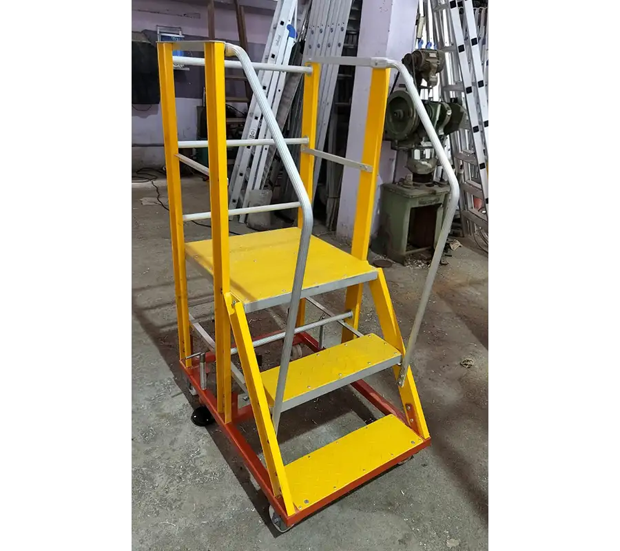 | FRP Trolley Ladder | 2 to 15 feet | Lockable wheels, fiberglass insulation, wide steps | Airports, warehouses, inspection, and maintenance use |