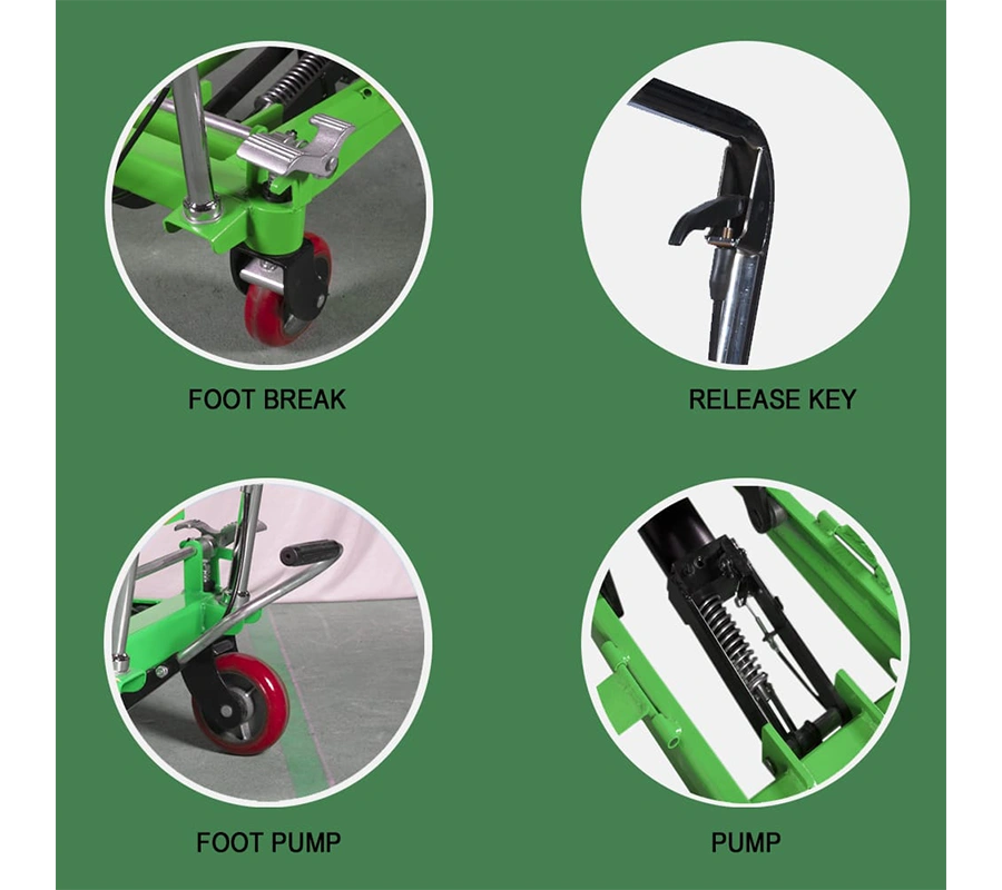 - Non‑marking tires, dual limit protection, supporting legs, guard rails